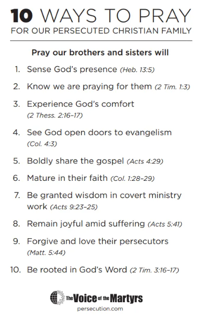 - we should partner in prayer with our brothers and sisters to pray for the persecutors (Matt.5:44)